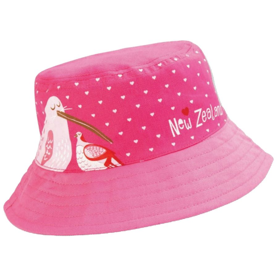 Childs Bucket Hat Kiwi and Flowers Pink 2-5yrs