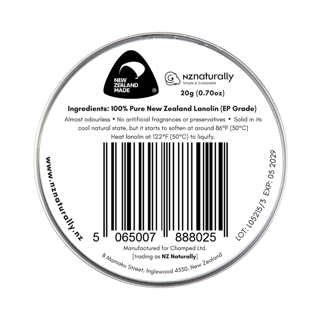 Pure New Zealand Lanolin - EP Grade, Jars (20g)