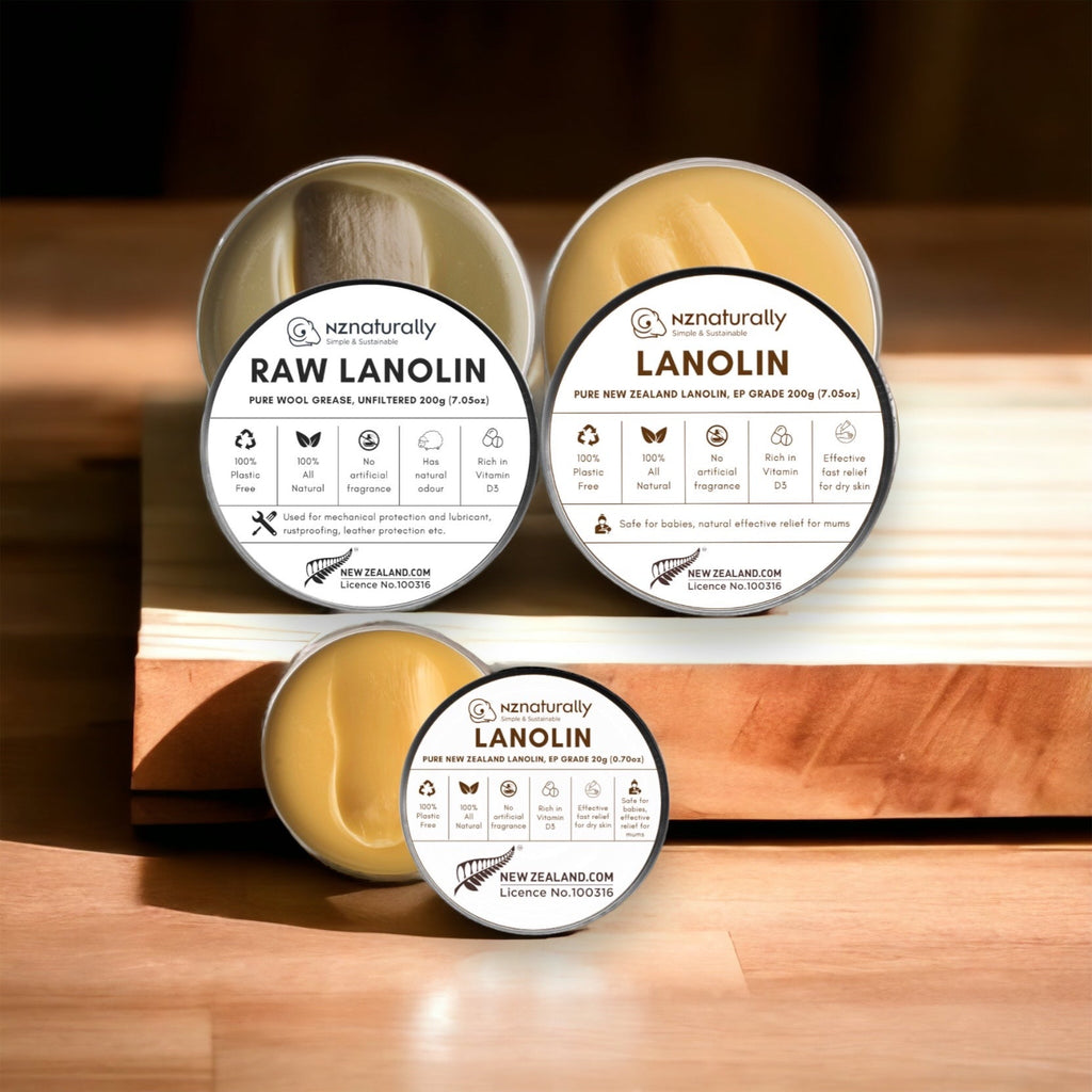 Mixed #2: 1x 200g EP Grade Lanolin, 1x 200g Raw Lanolin Jar + FREE 20g Jar
