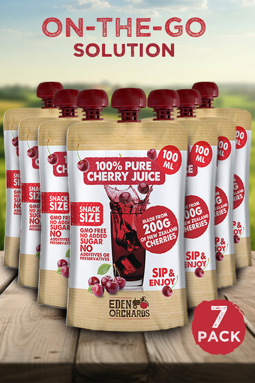 Discover the natural goodness of Eden Orchards award-winning 100% Pure Cherry Juice. Expertly crafted without any added sugars or preservatives, this delightfully refreshing juice is the perfect addition to your daily routine. Each 100ml serving is bursting with antioxidants and anti-inflammatory properties, making it an ideal choice for sleep, inflammation and workout-recovery.