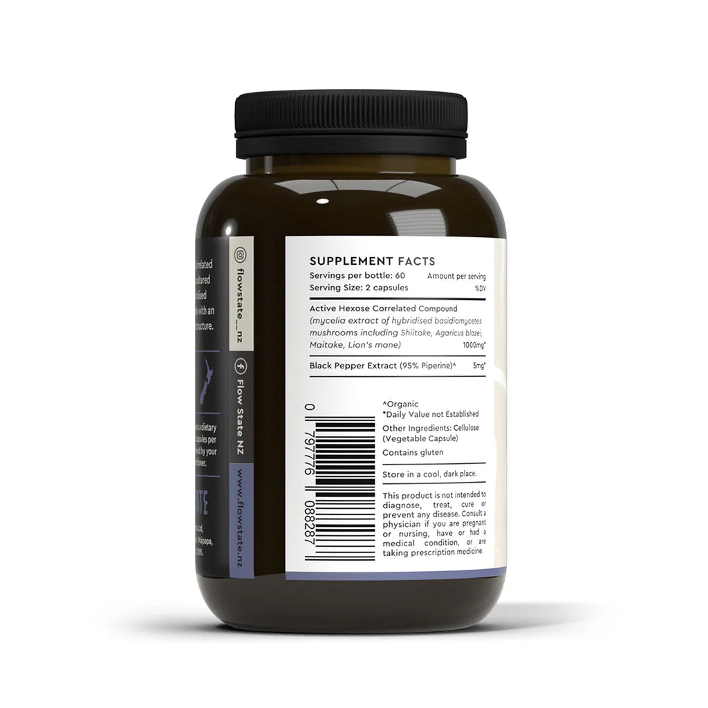 Each capsule contains a blend of four mycelium extracts from well-studied basidiomycete mushrooms: Shiitake, Maitake, Lion’s Mane, and Agaricus Blazei. Lion’s Mane mycelium is particularly rich in erinacines, compounds shown to support brain function and nervous system health.
