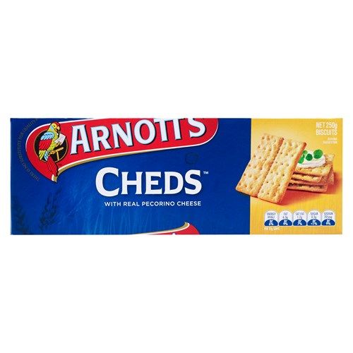 Enjoy a crisp cracker baked with a bold cheddar cheese flavour. Arnotts Crackers Cheds are perfect for snacking on their own or pairing with your favourite toppings.