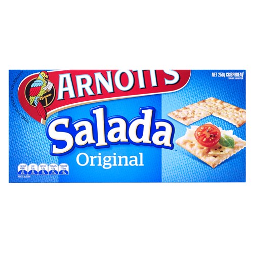 Arnotts Salada Crackers are a versatile, plain-flavoured cracker designed for sharing with family and friends. Each cracker easily breaks into four pieces, making them perfect for meals, snacks, or bite-sized portions. Enjoy their crisp, light texture on their own or paired with your favourite toppings.