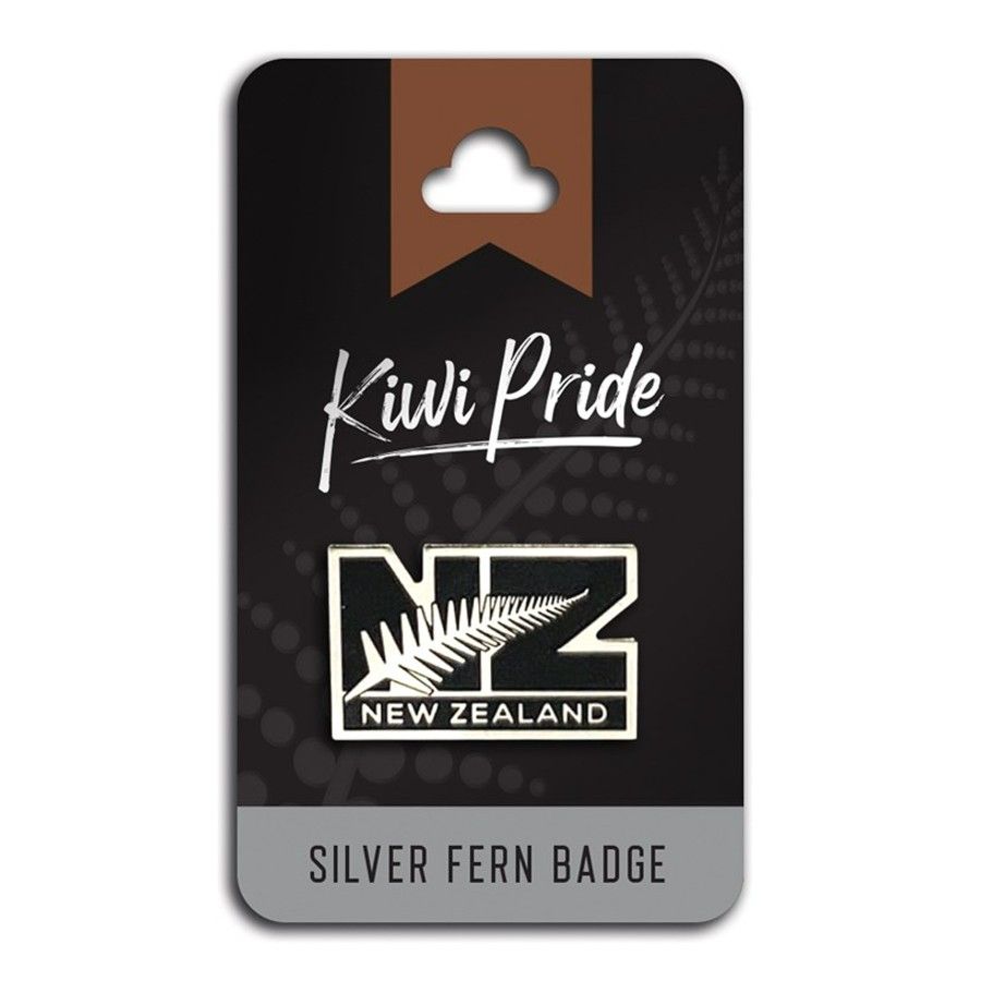 This black and silver metal badge features the iconic Silver Fern, making it a perfect way to show your Kiwi pride.