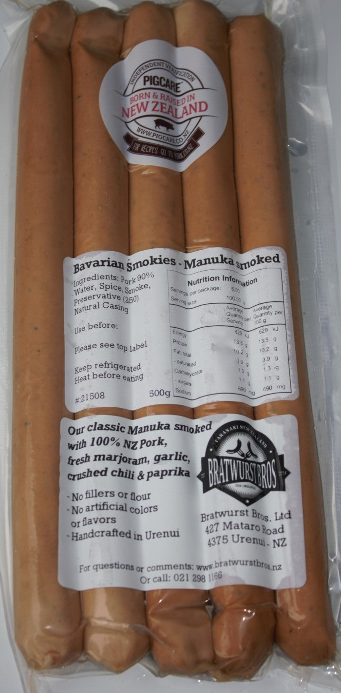 BAVARIAN SMOKIE – MANUKA SMOKED 500g