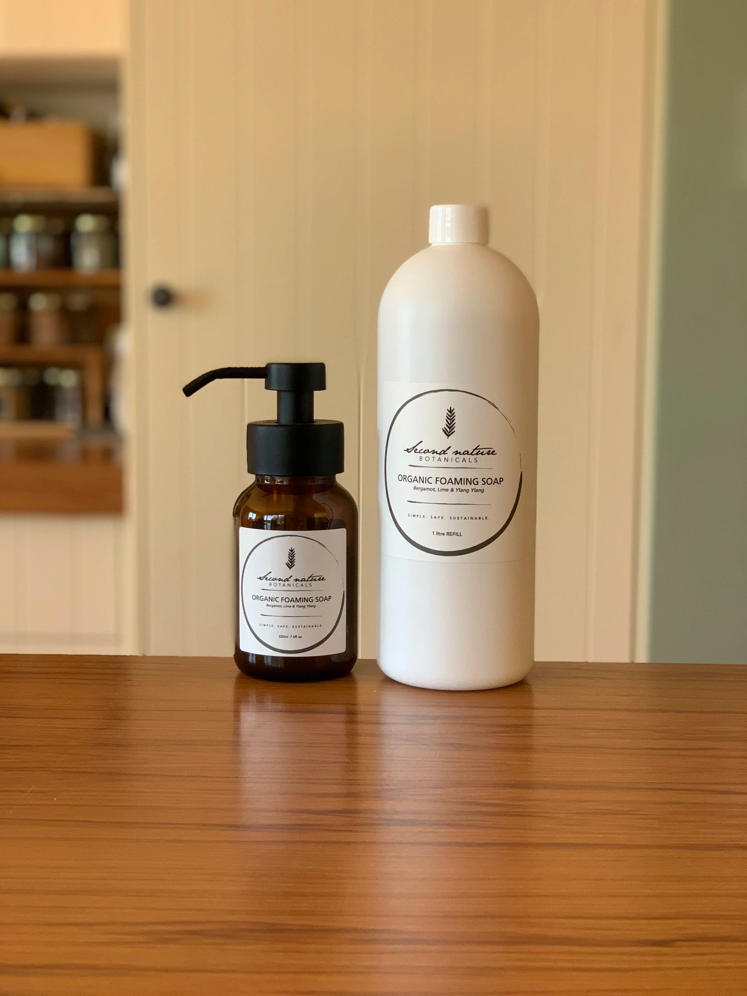 Duo Pack-Glass Organic Foaming Soap + 1L Refill