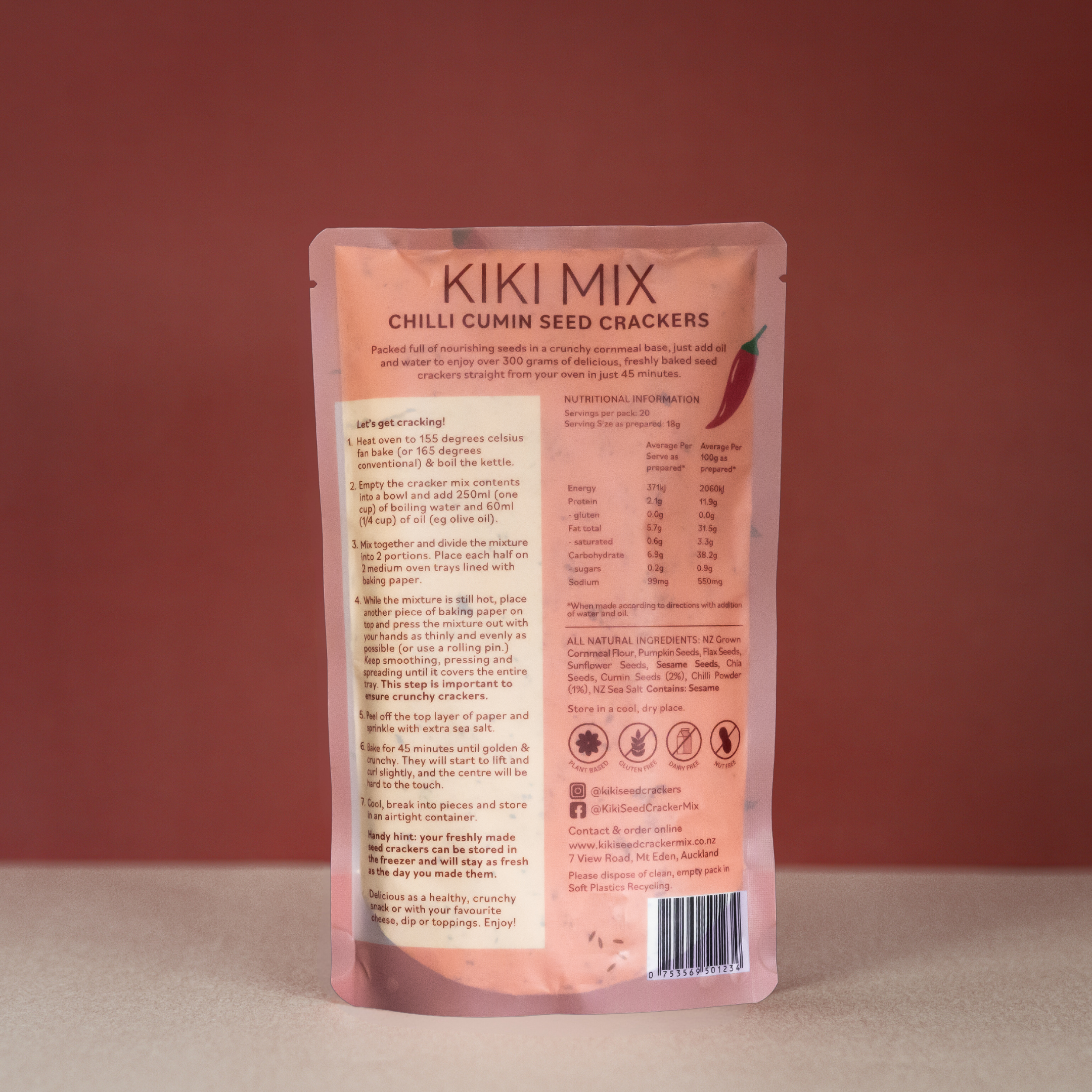 The seed cracker with a kick for those who like to spice things up a bit. Delicious on its own but even better with a creamy Brie or a tasty Gouda, hummus or smoked salmon.