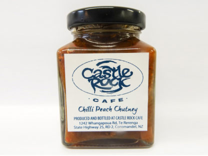 Ingredients: Peaches, chilli, onion, cinnamon, salt, sugar, cider vinegar, garlic & ginger