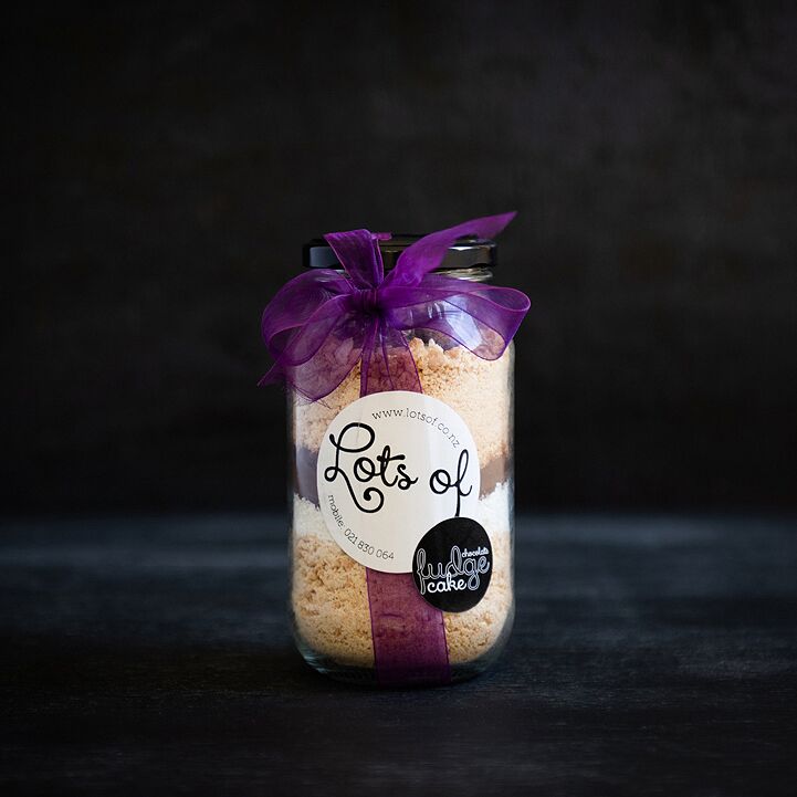All the ingredients you need to make a super-indulgent chocolate fudge cake … all presented beautifully in a reusable jar.