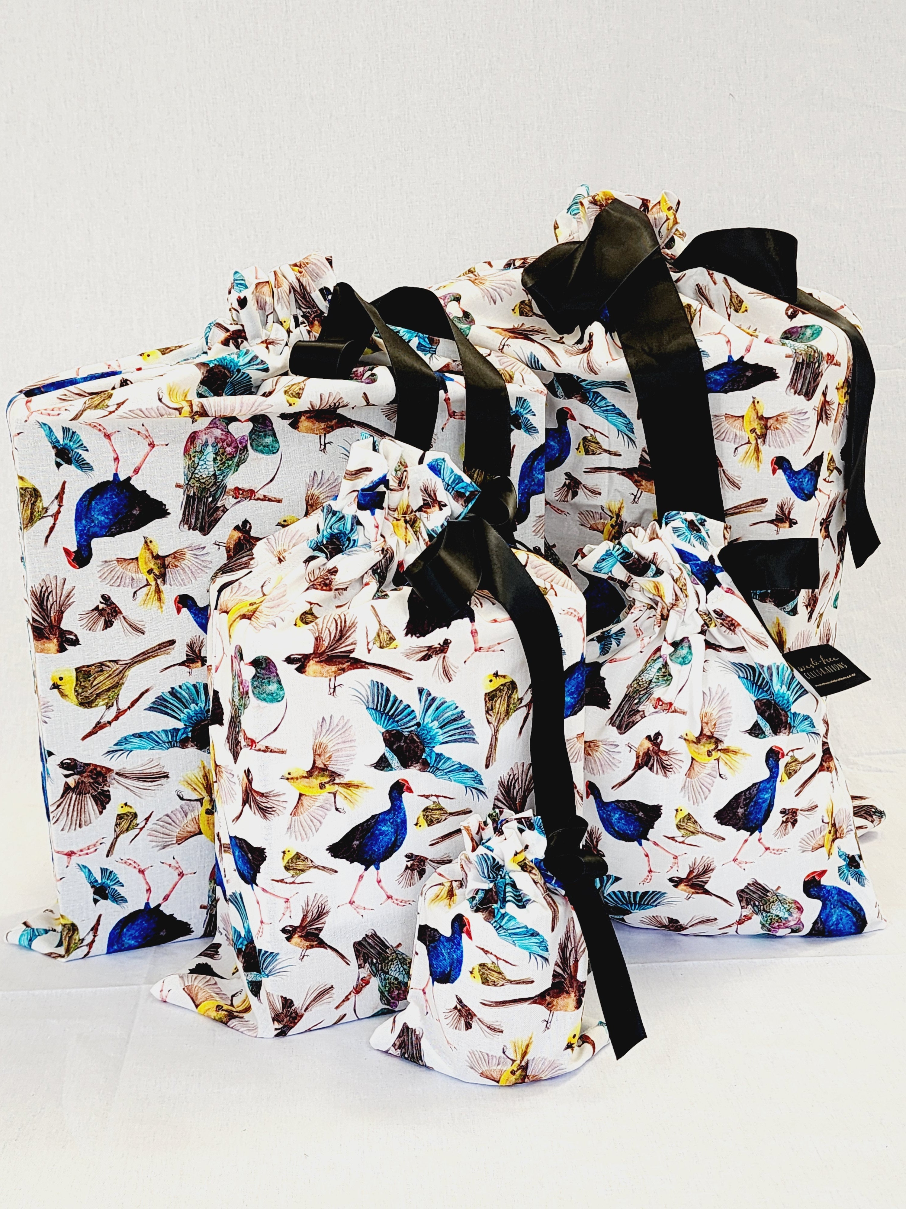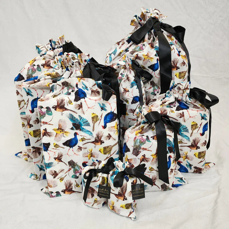 They can be reused over and over, replacing wrapping paper and sticky tape for a waste-free, time-saving solution. Made from durable 100% cotton in various great designs and hand-sewn in New Zealand by women in the ex-refugee community. You will reuse these fabric gift bags for decades!