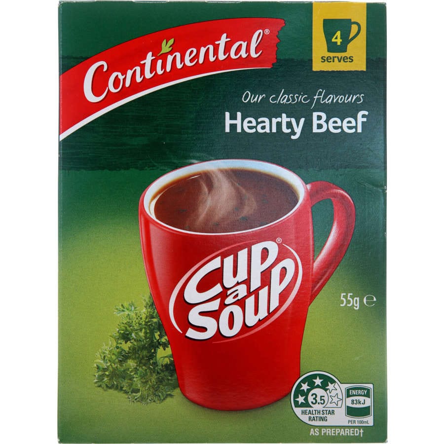 Enjoy Continental Cup-A-Soup Hearty Beef when you need a quick and tasty snack. Experience the hearty flavour of beef in a convenient packet – perfect for any time of day.