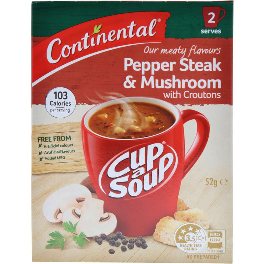 Enjoy a hearty snack with Continental Cup-A-Soup Steak & Mushroom with Croutons. This convenient packet soup delivers delicious flavour that’s perfect for any time of day. The combination of steak, mushroom, and crunchy croutons is sure to satisfy your cravings when you need something warm and tasty in a hurry.