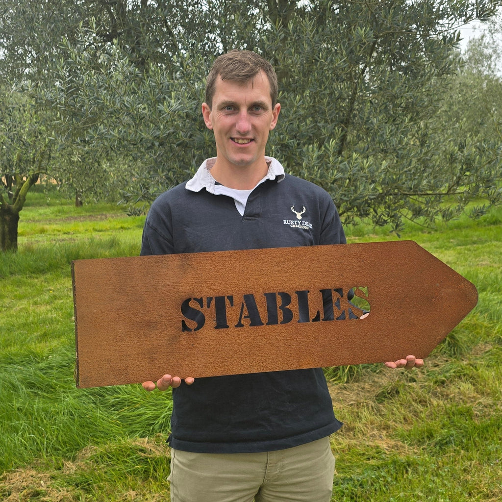 Here’s a corten steel directional sign that’s as tough as an old tractor and built to point the way without fuss. Made from solid, weathering steel that’ll rust up nicely, this sign is perfect for anyone who needs to show folks where to go—be it to the barn, the bog, or the bar! With a good solid patina that’ll only get better with age, this one won’t mind a bit of rain or mud. Just stick it up, point the way, and let it do the talking. Perfect for farms, gardens, or any spot where a sign’s gotta hold its own!