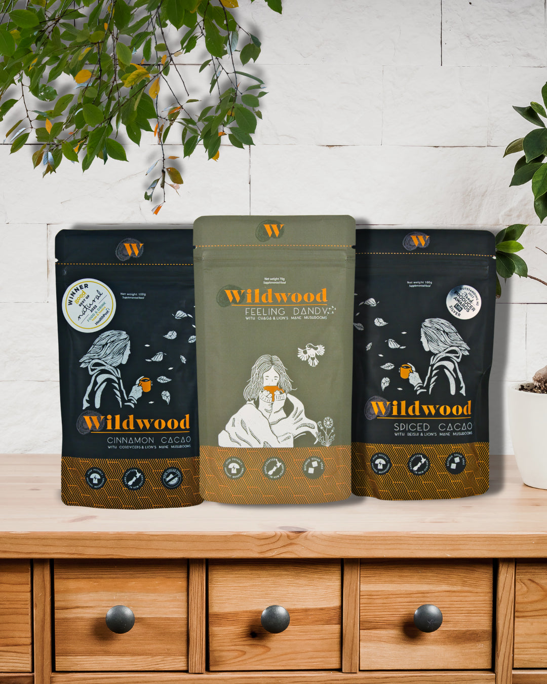 Explore all three Wildwood blends in one beautiful collection. A perfect way to begin your mushroom-cacao journey or share the gift of nourishing rituals.