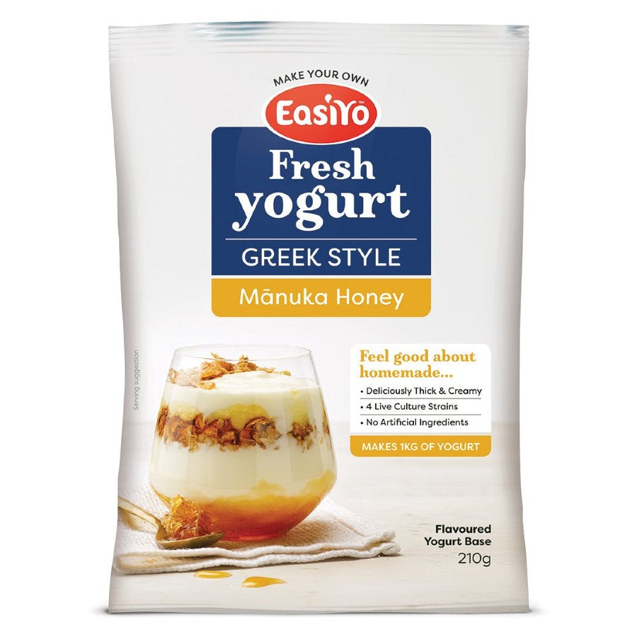 Easiyo Yoghurt Base Greek Style Manuka Honey - Easyio greek style yoghurt is a mediterranean style of yogurt that is extremely popular in europe and the middle east. It is a full-cream, plain yogurt that is ideal for those that like their yogurt very thick. It is especially good as a base for savoury dips, dressings and sauces or a great low-fat substitute for sour cream, cream or cream cheese. Also good for those that require good sources of absorbable calcium, protein and milk fat.