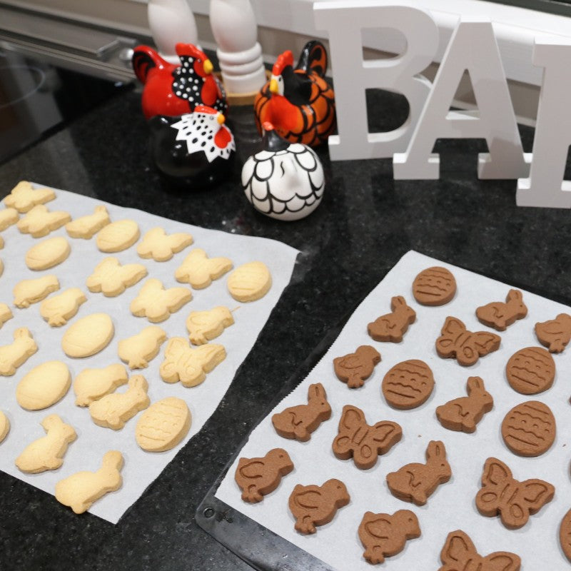Fun cookie cutters to make Easter Cookie shapes. Can be used with our Shortbread or Gingerbread-men baking mixes.
