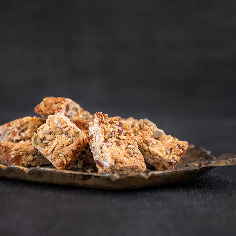 - Full of almonds, sunflower seeds, pumpkin seeds, dried apricots, rolled oats and coconut