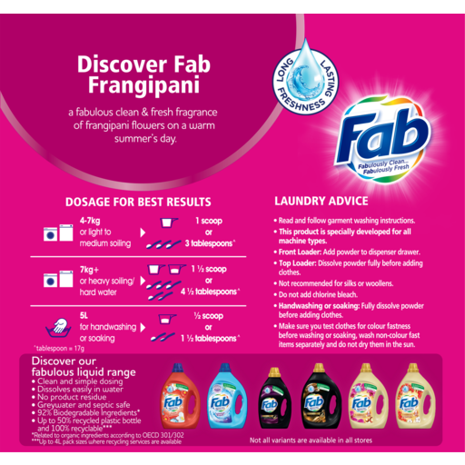 Fab Fresh Frangipani Laundry Powder Detergent 1kg