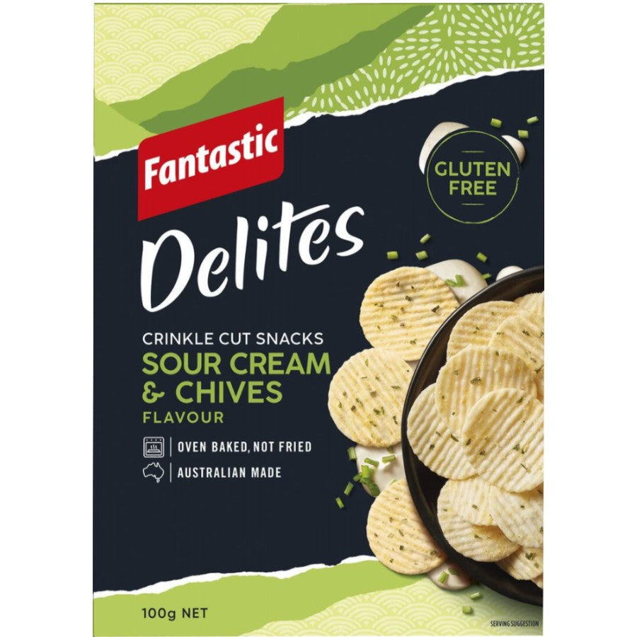 Fantastic Delites Sour Cream & Chives are a gluten-free, crinkle-cut rice snack, packed with delicious sour cream and chive flavour. Made with quality rice, they offer a gourmet snack option that's perfect for any occasion.