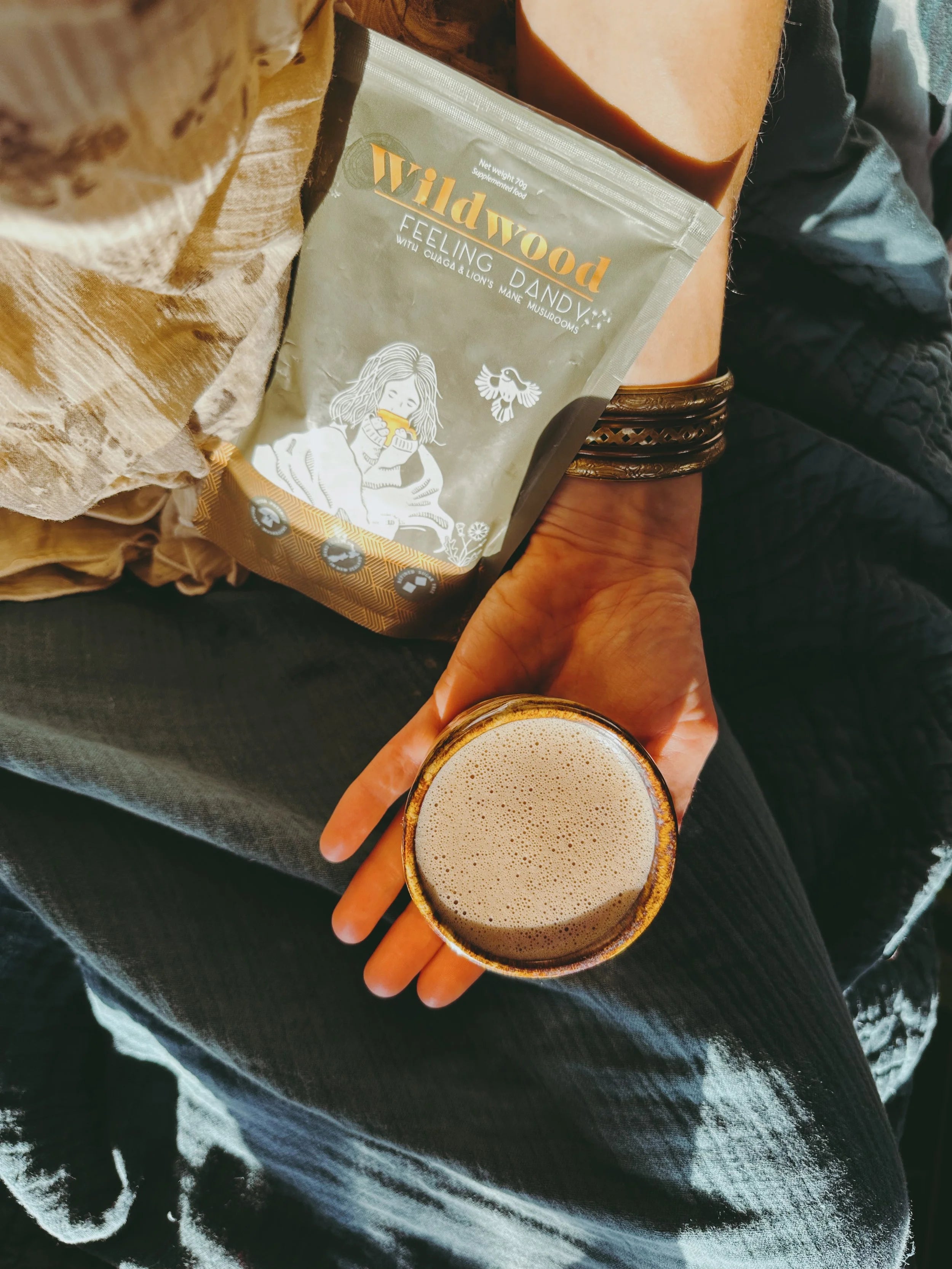 Dandelion (18%), *Mesquite, Chicory, *Cacao, *Coconut sugar, *Chaga extract (11%), *Lion’s Mane extract (11%), Liquorice.