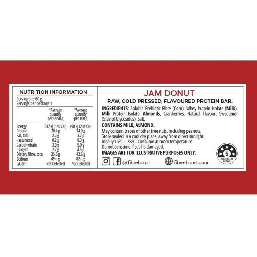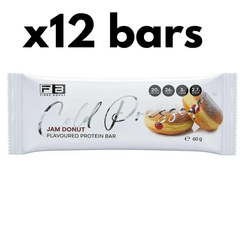 FIBRE BOOST JAM DONUT 60G X 12 BOX BUNDLE Cold Pressed Protein Bar -