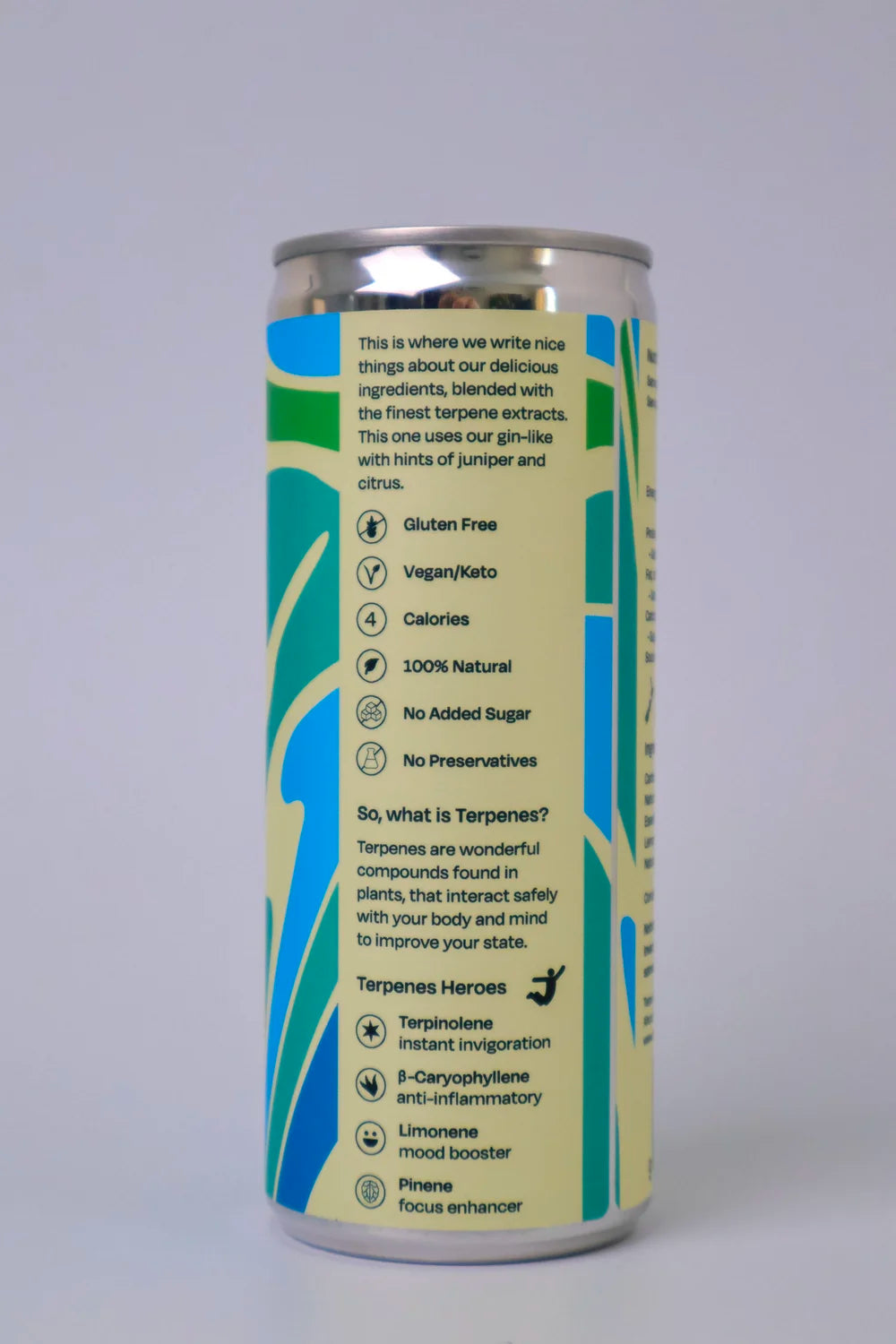 A refreshing twist on the beloved classic, blending familiar gin and tonic flavours with the aromatic and uplifting benefits of plant-based terpenes.