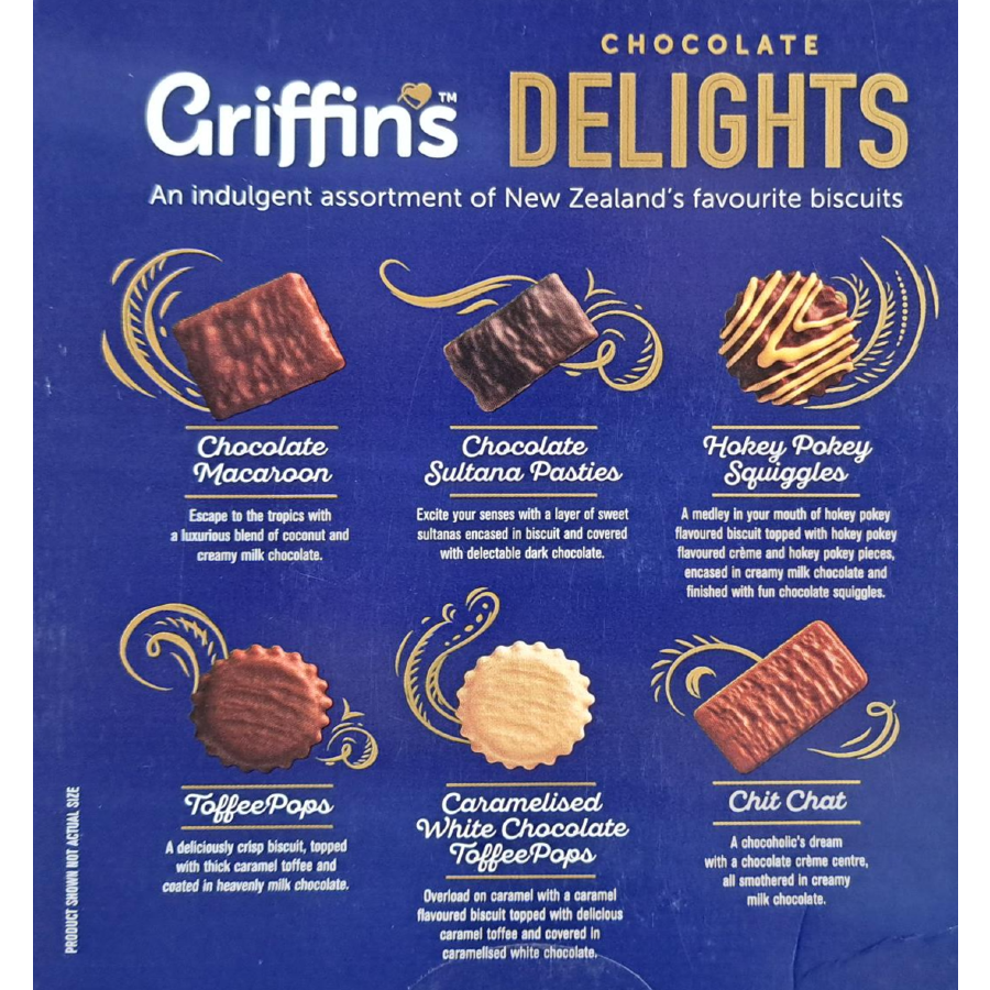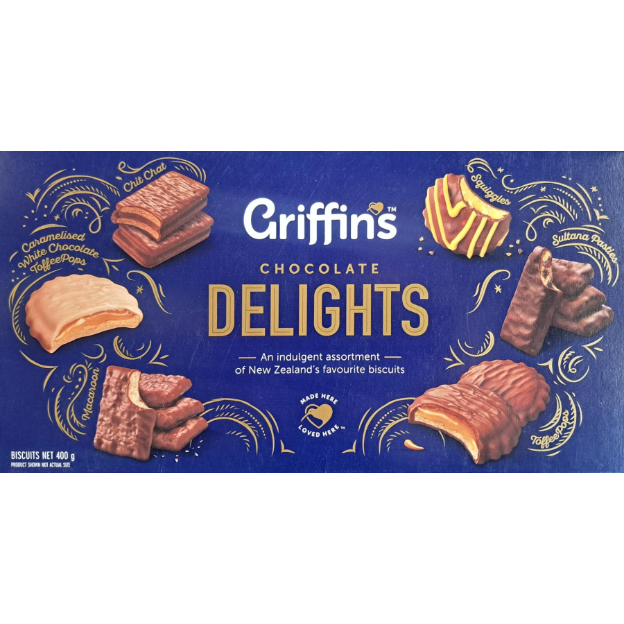 Treat yourself to Griffin’s Chocolate Delights – a tasty selection of New Zealand’s favourite chocolate biscuits, featuring classics like Toffee Pops, Chit Chats, and Squiggles. Enjoy rich chocolate, sweet cream fillings, and a satisfying crunch in every bite, ideal for sharing or pairing with a cup of tea.