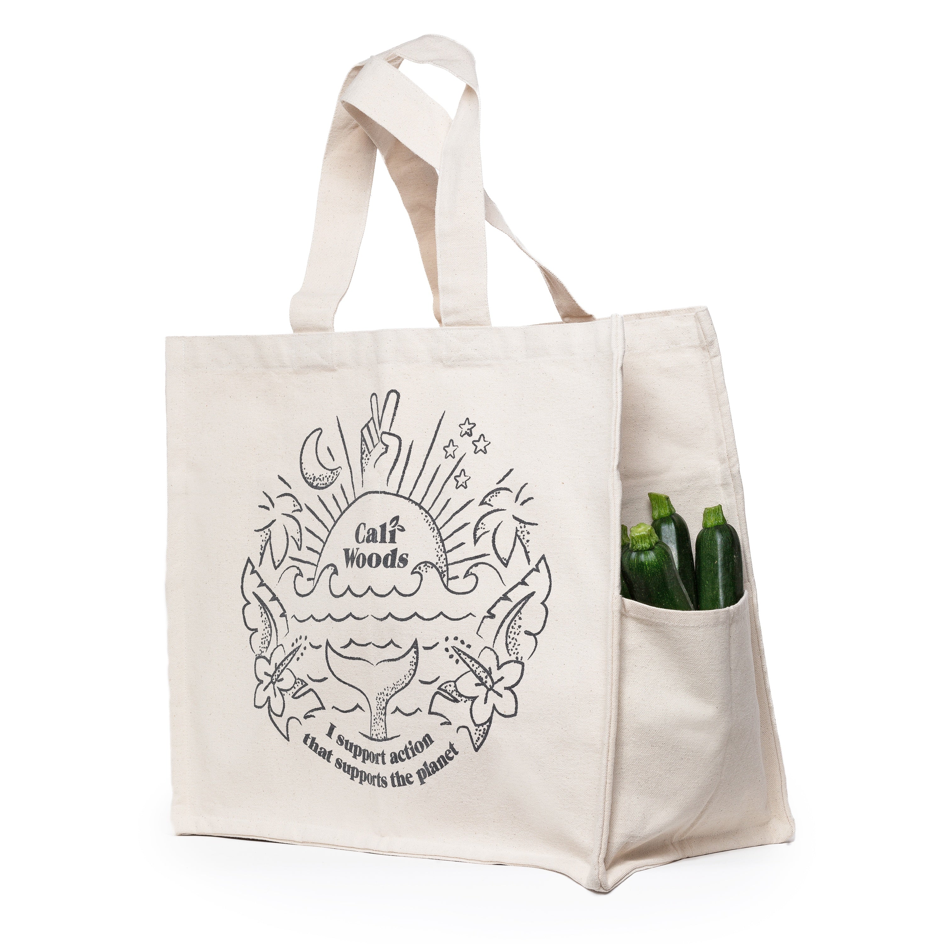 The CaliWoods Grocery Tote Bag has 6 internal compartments and 3 external pockets is makes shopping a dream. Ethically made from 100% GOTS certified Organic Cotton, and is designed to separate and protect loose items. Farmers market, bulk food shopping, or beach day, anyone?