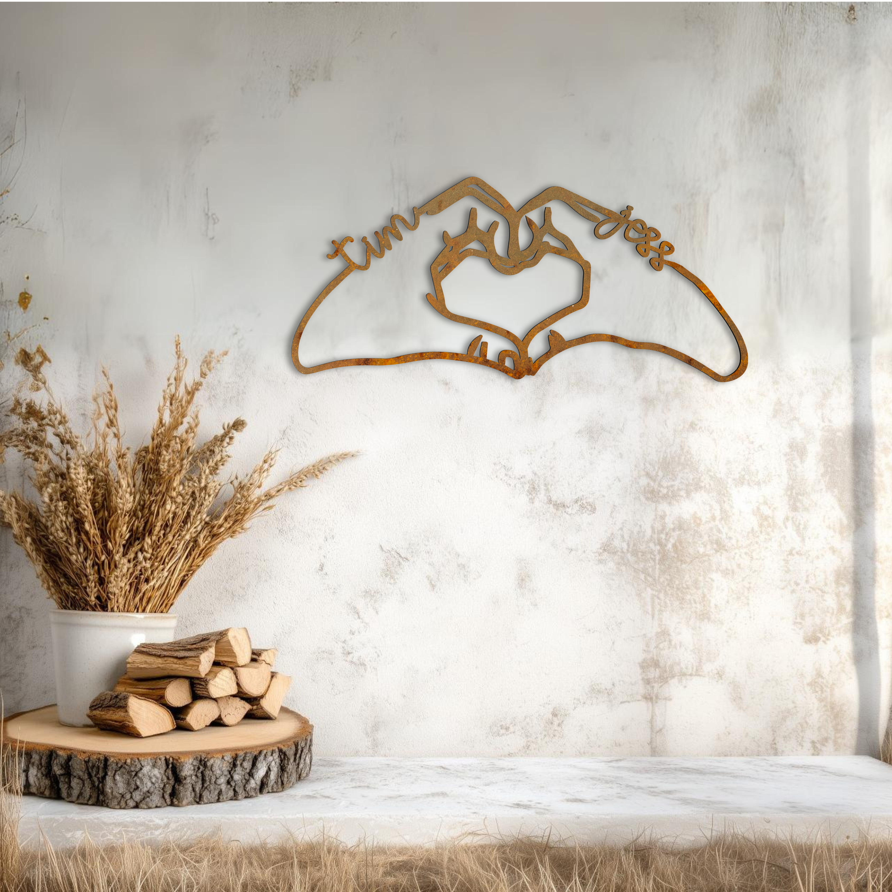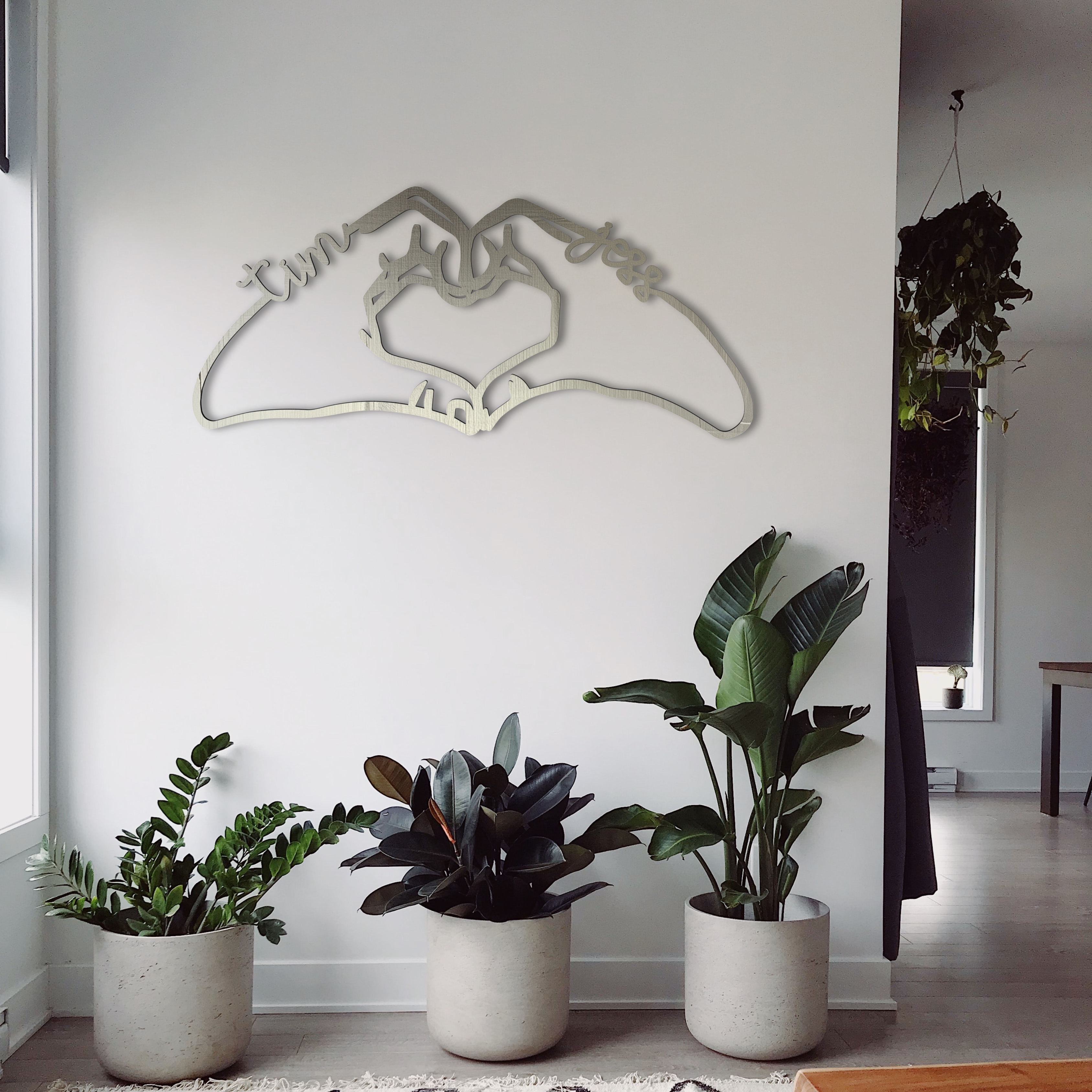 Tired of awkwardly making heart shapes with your hands in photos? Yeah, us too. "Handcrafted Love" does it for you—forever. Featuring two hands forming a heart with your names integrated into the design, this piece is the perfect way to say, “I love you” without straining a finger. Ideal for couples or friends who don’t mind a little PDA (Public Display of Artwork).