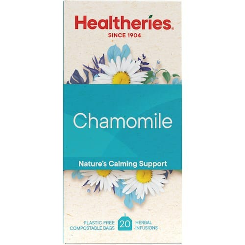 Healtheries Chamomile Original Tea - Looking for a way to relax and unwind in the evenings? Our busy lifestyles make it hard to switch off in the evenings and it can often feel like our tummy’s are doing summersaults. The chamomile daisy is renowned not only for the delicate, gentle flavour it imparts to a cup of tea, but also for its calming effect. Healtheries Chamomile Original Tea is just what you need to relax and unwind.