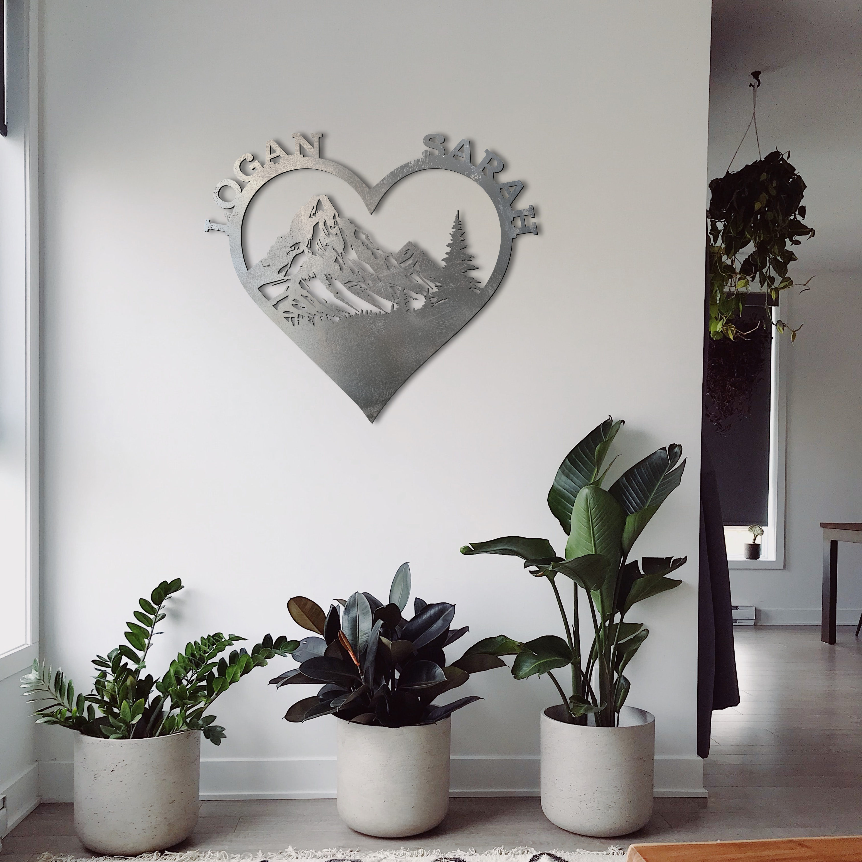 Celebrate your love for each other and the natural world with the "Heart of the Mountains." This beautiful metal piece features a mountain scene inside a heart and can be personalized with two names, making it a thoughtful and unique gift. Whether it hangs in your home or garden, it’s a reminder of the peaks you’ve reached together.