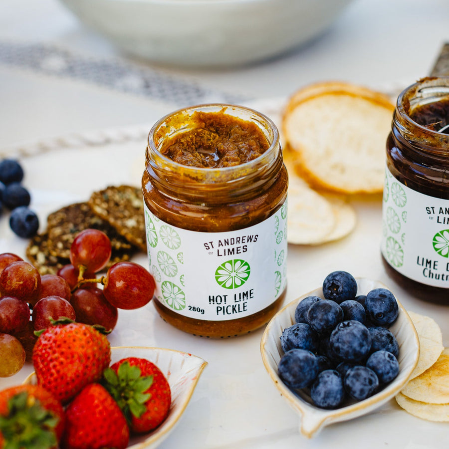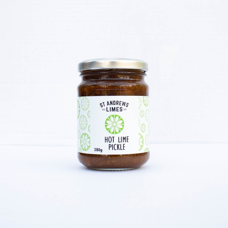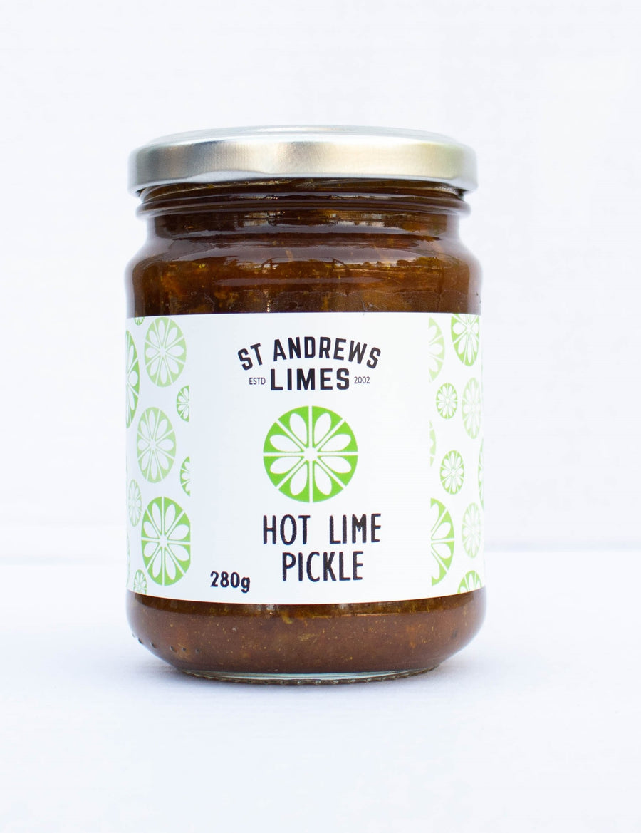 A lime driven pickle that's hot but won't blow your taste buds. While it is ideal with curries and meat dishes, this lime pickle has been described as "sweet, warm/ hot and aromatic". Compliments a cheese board - use with aged cheddar on crackers or for a milder flavour, mix with cream cheese to spread on bagels and/or crackers.