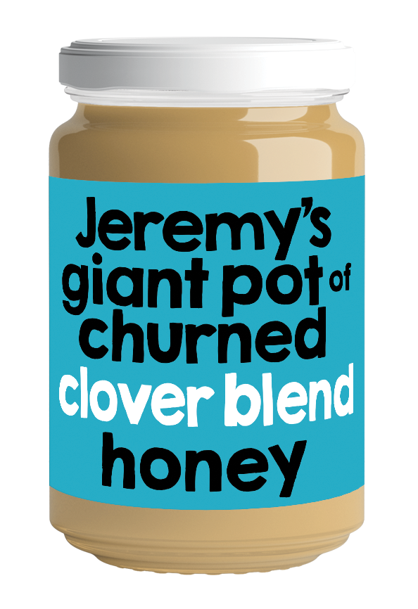 Jeremy's giant pot of churned clover blend honey - 980g is backordered and will ship as soon as it is back in stock.
