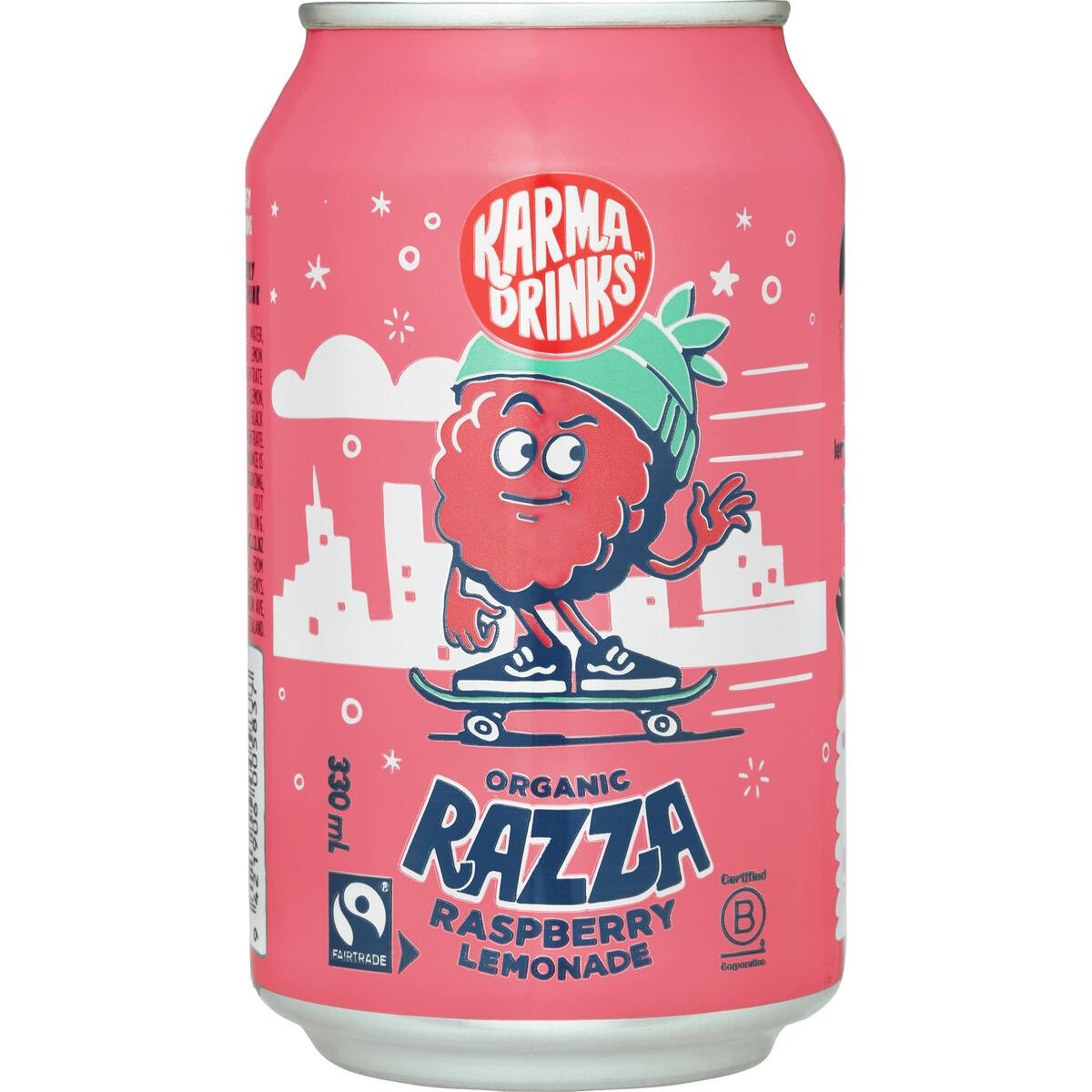 Karma Drinks Organic Razza Raspberry offers lemons with a sweet and tangy twist in this lively pink lemonade.