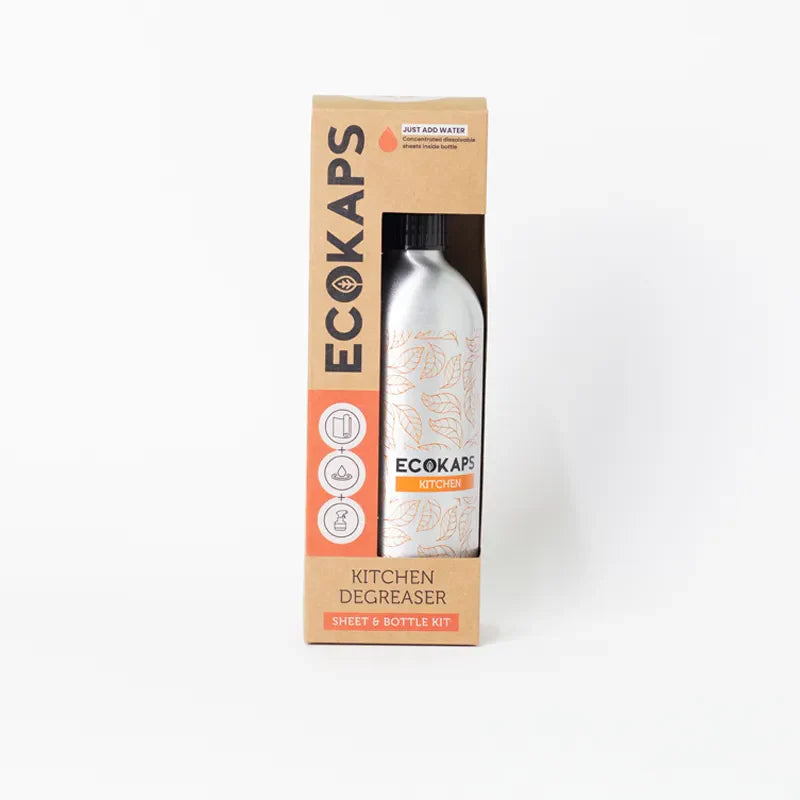 Each kit contains: 2 x 4g kitchen degreaser cleaning sheets, 1 x 500ml aluminium spray bottle and 1x Refill Envelope. Each sheet fills 500ml.