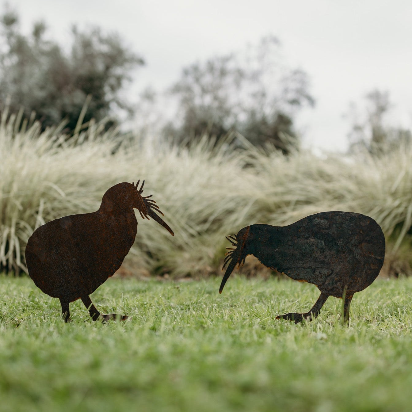 Who needs flight when you've got corten steel? These pair of kiwis are ready to add some fun to your garden, and they'll stick around rain or shine. Installation couldn't be easier - just pin them to the ground and watch them go.