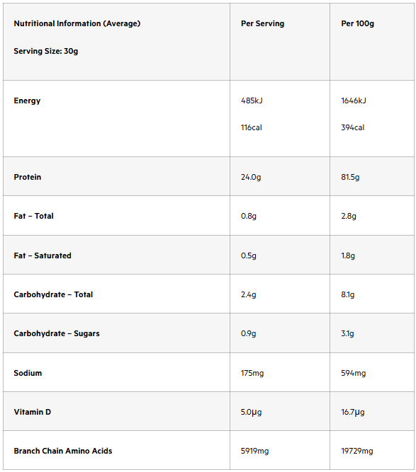 - Add 1 scoop (~30g) of Vanilla Lean Whey Protein to 250ml of cold water or milk. Shake well – then serve.