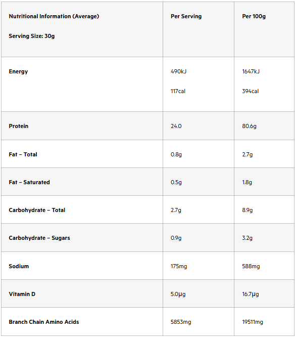 - Add contents of Vanilla Berry Lean Whey Protein sachet (~30g) to 250ml of cold water or milk. Shake well – then serve.