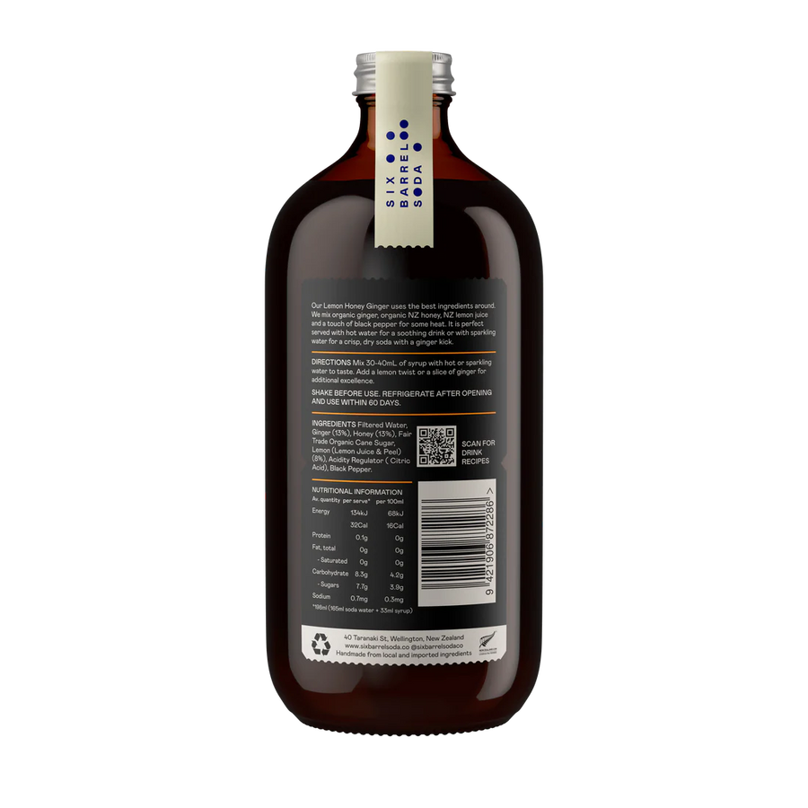 This Lemon Honey Ginger Syrup from Six Barrel Soda is a hug in a mug and uses the best ingredients around. A delicious mix of organic ginger, organic NZ honey, NZ lemon juice and a touch of black pepper for some heat.