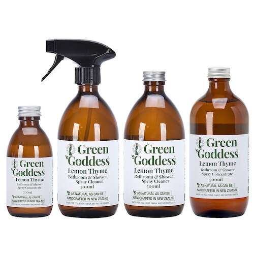 Lemon Thyme Bathroom & Shower Spray Cleaner powered by essential oils.