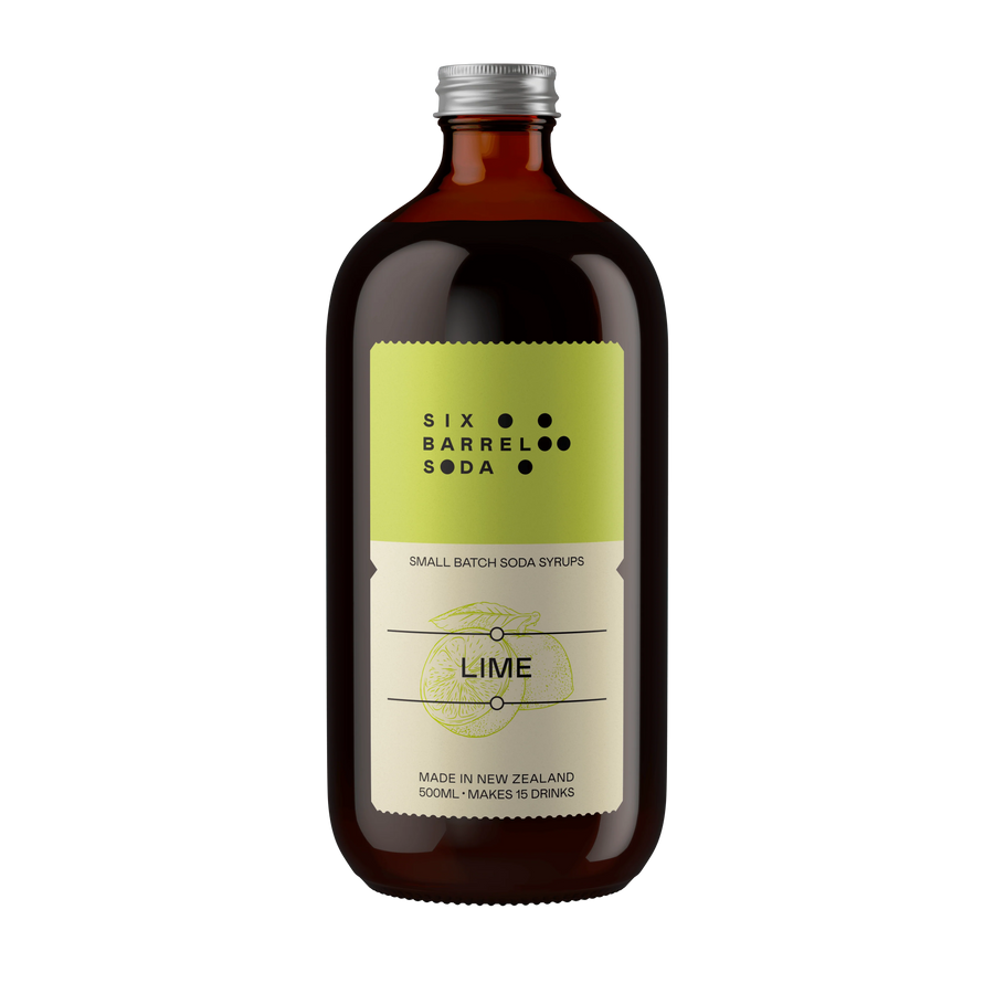 Six Barrel Soda's classic lime cordial is made with New Zealand lime juice for a crisp citrus backbone to keep you cool when it’s warm out.