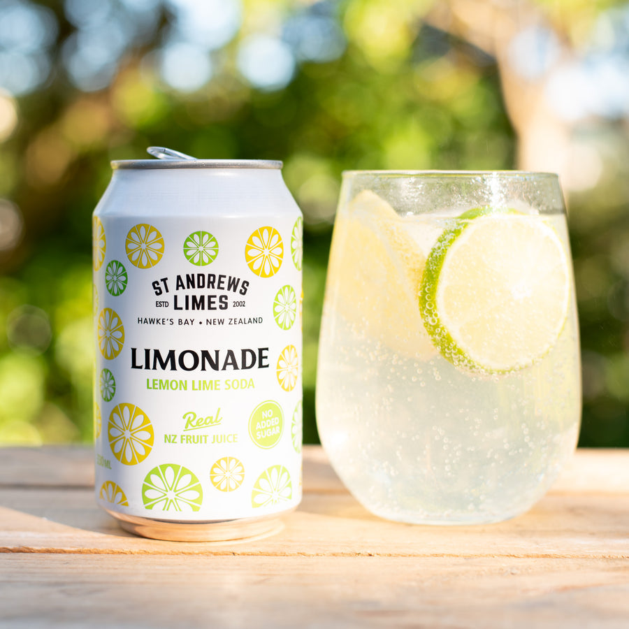 330ml can made up of NZ sparkling water, NZ Lemonade juice and NZ Lime juice
