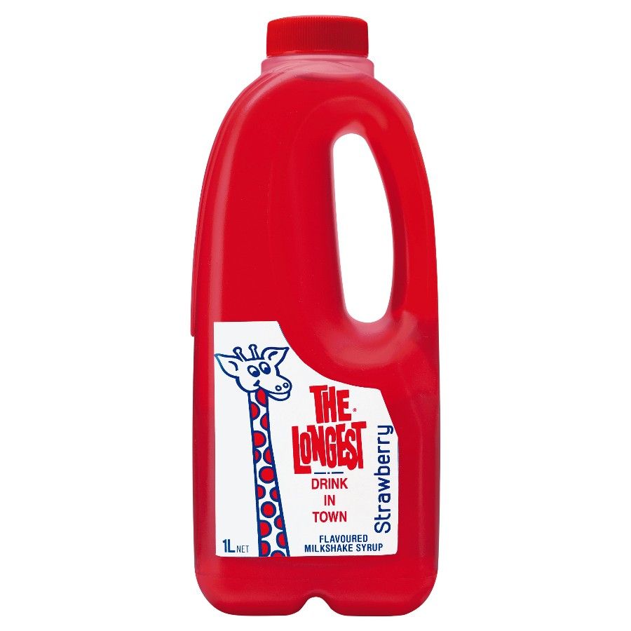 Enjoy the classic taste of The Longest Drink In Town Strawberry Milkshake Syrup, inspired by the beloved cups featuring the iconic blue and red giraffe. A familiar favourite in dairies, cafes, ice cream parlours, and takeaways, it's perfect for creating delicious milkshakes and thickshakes at home.