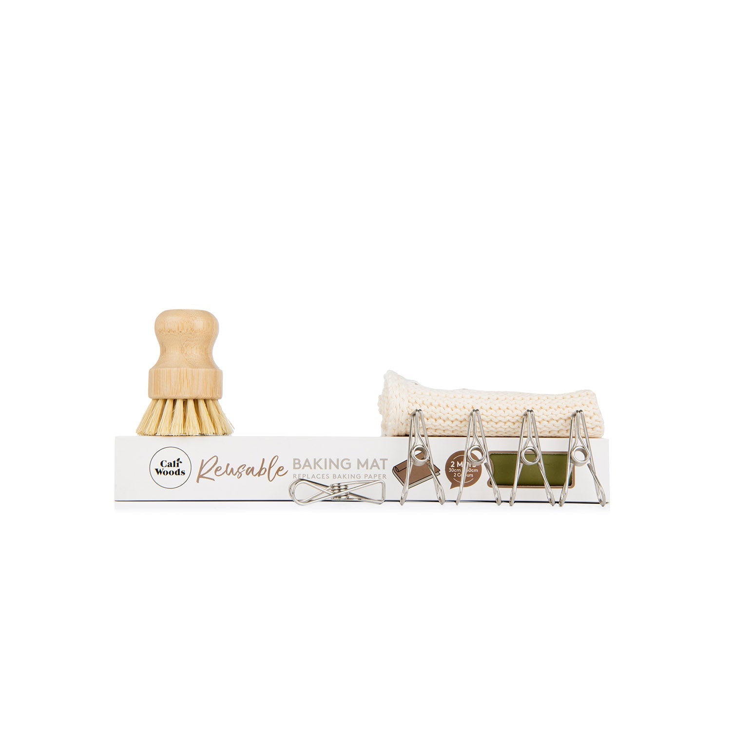 These are the essentials you need in your sustainable kitchen. From baking to cleaning to food storage - this kit has you covered. Say see-ya to buying baking paper, keep food fresh sealing bags with the Stainless Pegs, and clean waste-free with the washable Knitted Cloth.