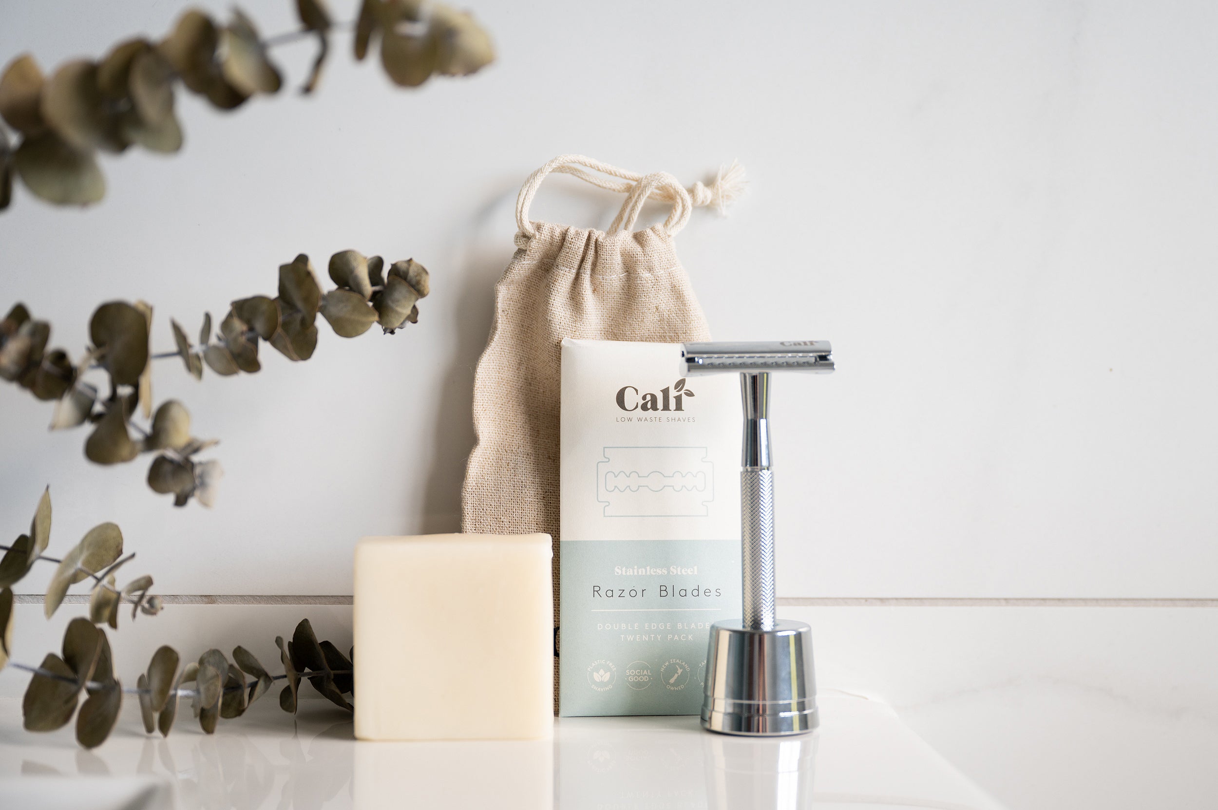 The Low Waste Shave Kit is a luxe addition to your bathroom and has everything you need to be able to ditch plastic disposables and expensive refill cartridges.