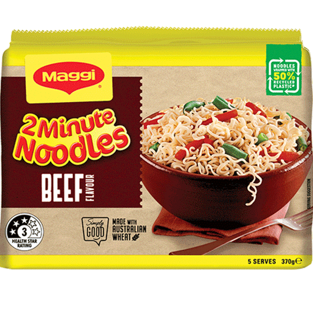 Maggi 2 Minute Instant Noodles Beef 370g 5pk