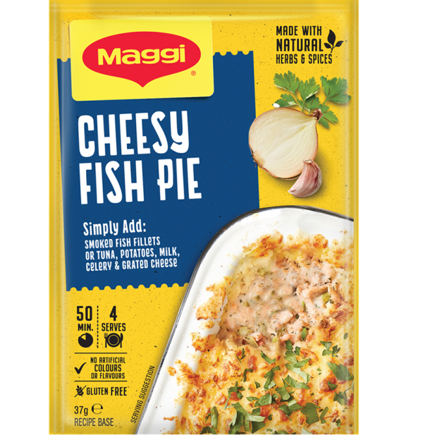 Make dinner worry-free with MAGGI Cheesy Fish Pie Recipe Base 37 g. Simply mix this base with fish (smoked fillets or tuna), milk, celery, mashed potatoes and a sprinkle of cheese for a rich and creamy family favourite. Ready in under an hour, it’s ideal for busy weeknights or when you crave comforting home cooking.