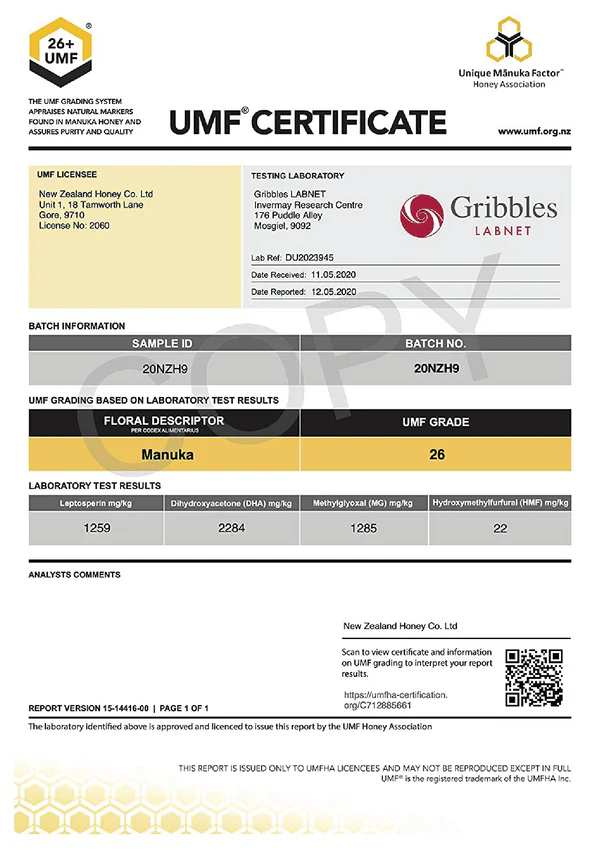 This rare UMF™ 26+ Manuka Honey is scarce in quantity and powerful in performance. Only a very small proportion of Manuka Honey ever makes it to this grade. In other words, it’s one of the rarest superfoods in the world. If you’re looking for some of the highest quality honey available, you’ve found it.