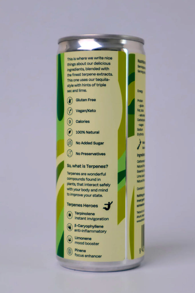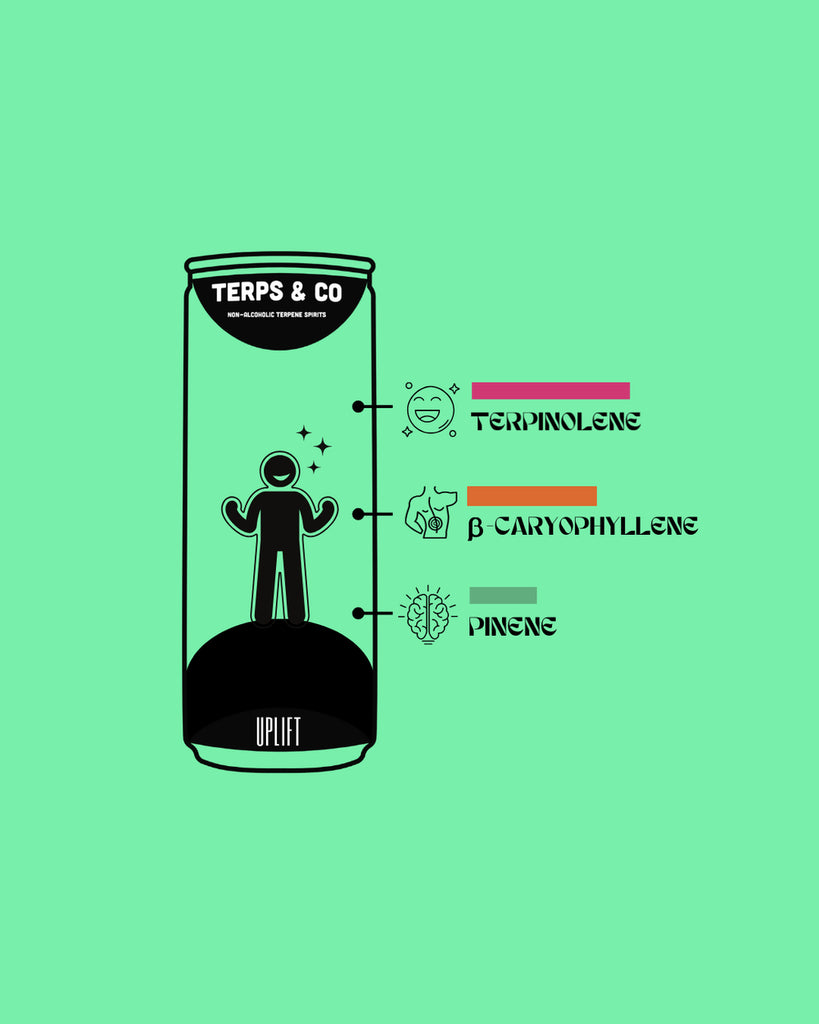 Terps & Co. Alcohol-Free Beverages: Elevate your senses with our non-alcoholic drinks infused with a unique blend of natural plant terpenes, including limonene, pinene, and terpinolene. These terpenes are renowned for their mood-boosting, uplifting, and euphoric properties.