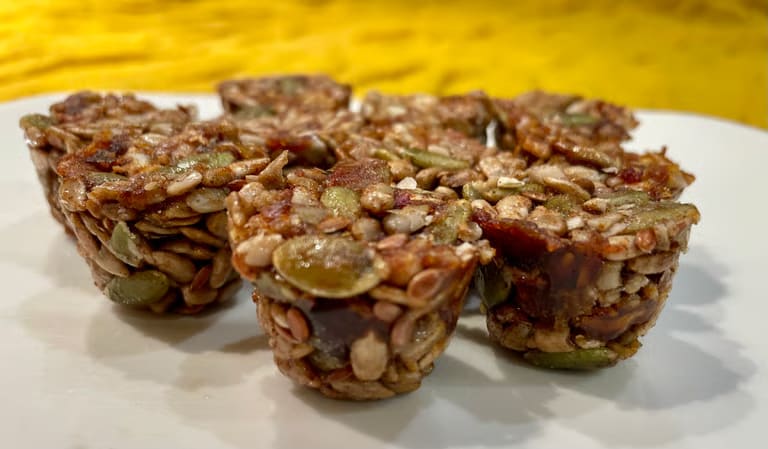 A naturally sweet blend of sunflower seeds, pumpkin seeds, dates, and linseeds, with a touch of cinnamon and nutmeg for extra richness. Choose between the plain version for a wholesome, satisfying snack or indulge in the chocolate-coated option, featuring a rich layer of Whittaker’s 72% Dark Ghana chocolate for a decadent finish. Perfect for on-the-go, lunchboxes, or satisfying your sweet cravings.